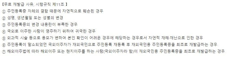 그리고 아래와 같은 사유로 재 발급 시에는 수수료는 면제가 됩니다.